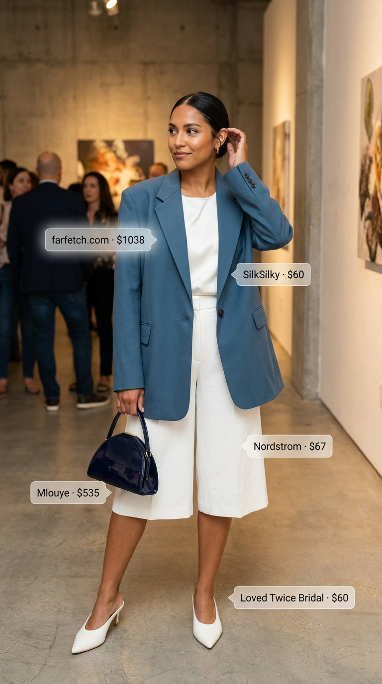 Art Gallery Explorer: Ditch the Stuffy, Embrace the Chic Art Gallery Explorer: Ditch the Stuffy, Embrace the ChicView & Save → $1760 $$$ Drape over shoulders or wearOversized blazer drapes effortlessly, maintainingPadded shoulders create a structured Check sizing before buying Art Exhibition, Business Casual, Creative Meeting