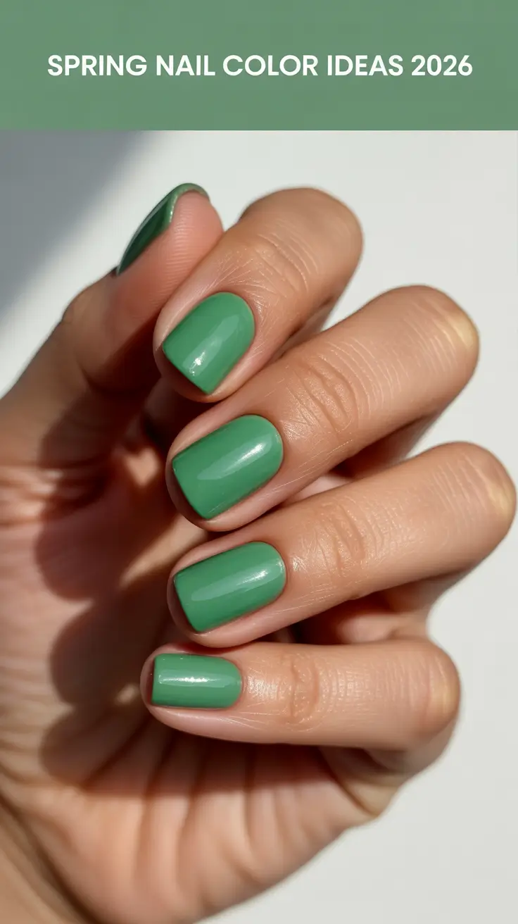 For those who draw inspiration from nature, a rich jade color serves as a jewel in the crown of 2024 solid colors. This polish in a sleek, rounded shape is reminiscent of the lush greenery of spring, suggesting growth and renewal. It’s a color that resonates with the trendy woman who appreciates the outdoors and matches effortlessly with earth-toned attire or as a complement to floral prints.